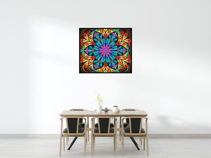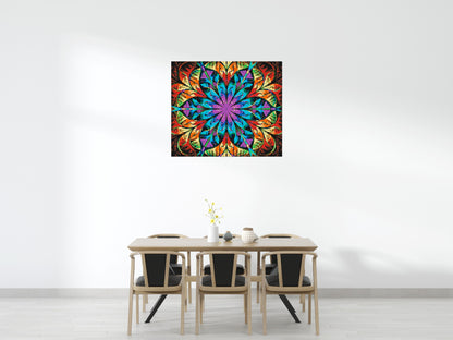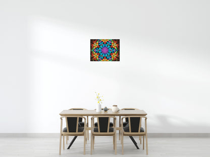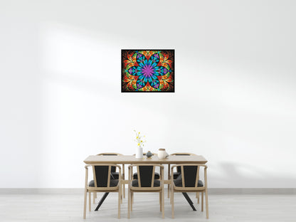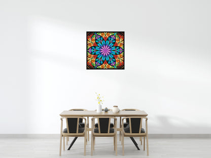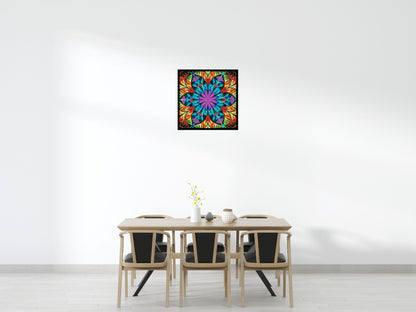 Choose from different sizes to fit your personal preferences and space requirements. Whether you want a small yet striking accent piece or a large, attention-grabbing statement, our colourful abstract flower mosaic is sure to brighten up any room and bring joy to all who see it.
