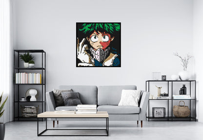 Immerse yourself in the world of heroes with our Lego-compatible brick art mosaic featuring the iconic Midoriya Izuku from My Hero Academia, rendered in captivating pixel art style! This mosaic perfectly captures the essence of Deku, the determined young hero-in-training, in a nostalgic and visually striking design reminiscent of classic video games.