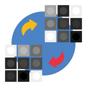 - Uses 7 monochrome colours (black, white + 5 greys) by default.