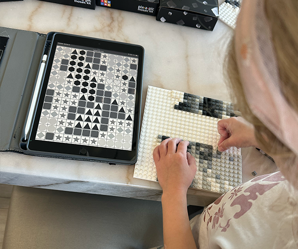 While the recommended age is 14 and up, younger children can definitely join in with adult supervision. Building a Pix-a-Pic mosaic can be a fun and rewarding activity to do together! Just note that the small bricks are not suitable for children under 3 years old due to choking hazards.