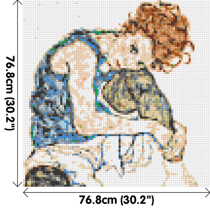 Woman Sitting with Bent Knee by Egon Schiele - Brick Art Mosaic Kit